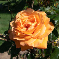 A captivating climbing rose that produces classic, 4-inch wide tangerine-hued blooms that are double (17-25 petals) and highly fragrant. Blooms from late spring through fall with dark green glossy foliage and offers excellent disease resistance.